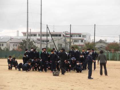 準備運動中も号令の大きな声が男女とも響いていました。
