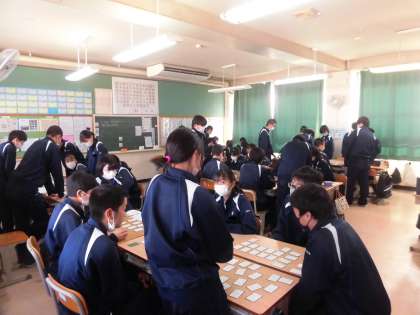 国語と理科授業の様子です。国語は百人一首です。