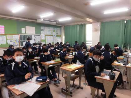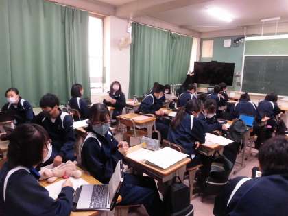 英語授業は各班で発表です。