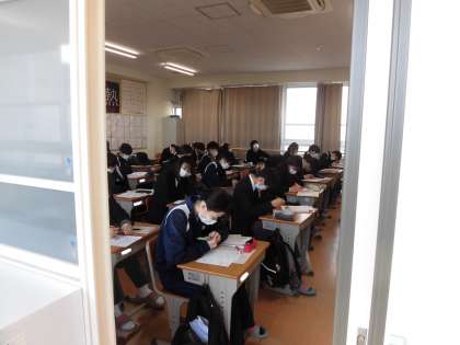 授業の様子です。 とても寒いですがマフラーやひざかけを使用して換気中です。