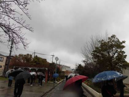 少し寒く、雨降りの朝です。桜が咲き始めています。
