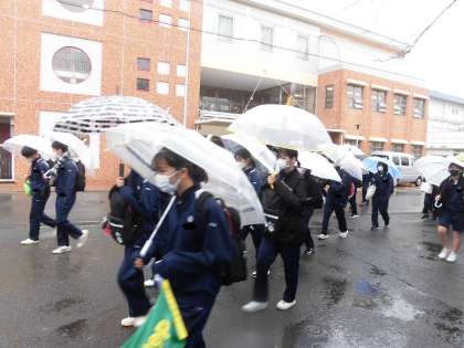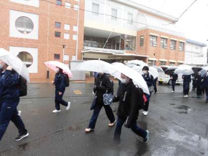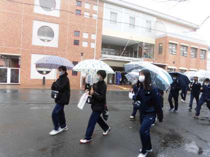 雨の日はリュックが濡れないように前に掛けて登校する人も多くいます。