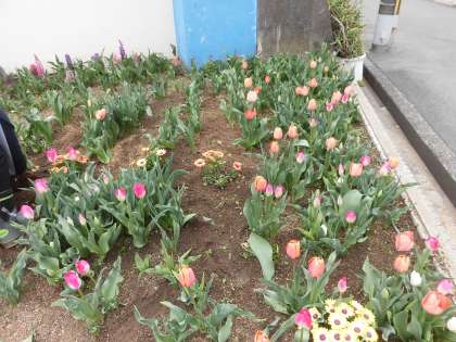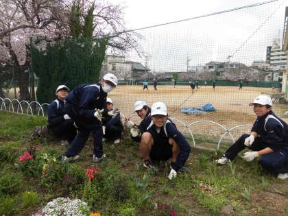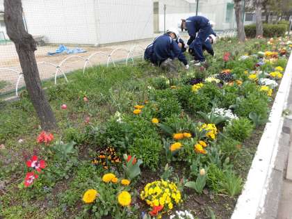 テニス部の人たちが手伝ってくれて花壇を美しく整備しました。