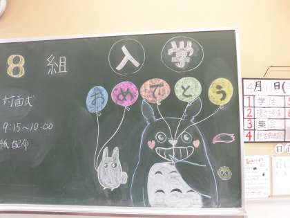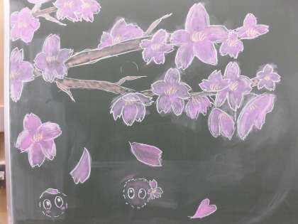 1年生教室は美術部が協力してくれた桜が美しく咲いていました。