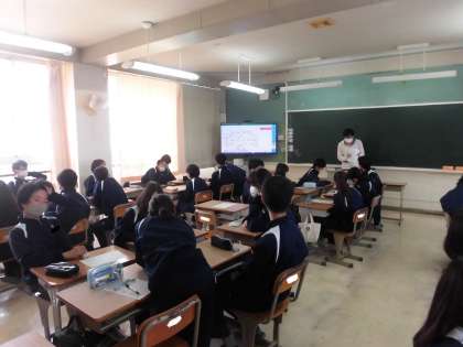 2年生フロアもとても静かです。 班の役割を決めているクラスもありました。