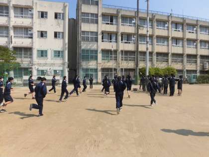 集団行動の練習をしています。 さすが3年生ですね、すばやく集合しています。