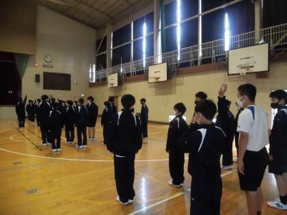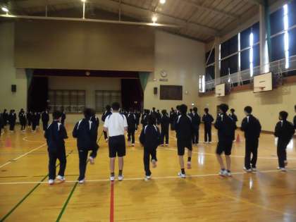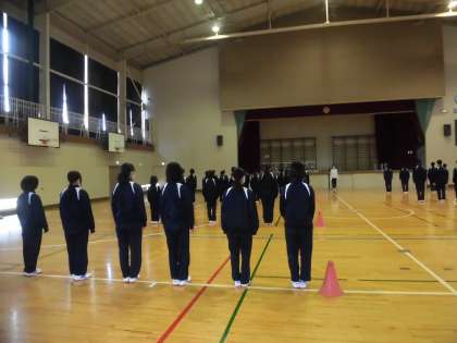 体育授業「集団行動」の練習です。 素早く息の合った集団行動を見せてくれました。