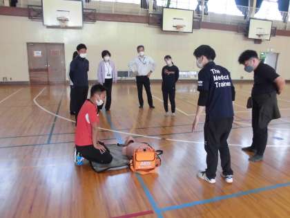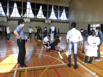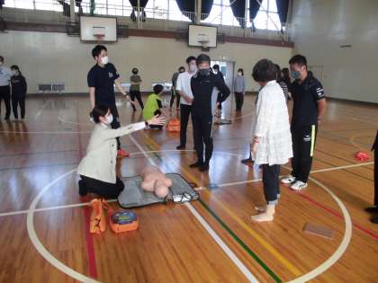 本日の放課後、心肺蘇生法についての職員研修が行われました。