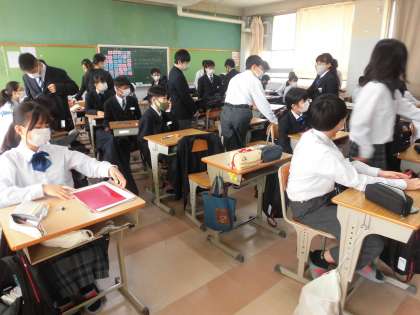 担任の先生から説明を聴いて、テストを受ける準備中です。