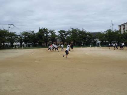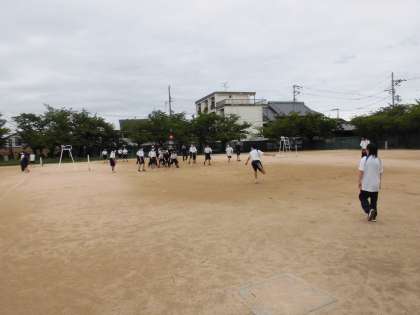 雨もやみ、たくさんの生徒がグランドで楽しんでいます。