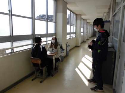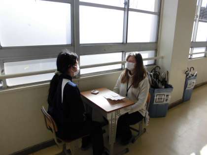スピーキングのテスト中でした。 しっかりとNSの先生の質問に答えていました。