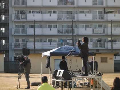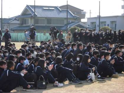 体育大会の挑戦の応援ソングをつくってくださった 番匠谷紗衣さんが来校しました。