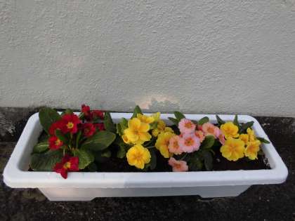 日差しが暖かい朝になりました。 PTA実行委員さんたちが植えてくださった花も美しく咲いています。