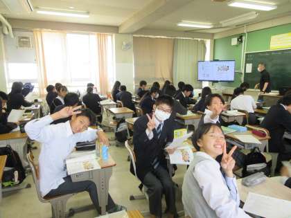 英語授業、会話練習中でした。いつも仲良く和やかですね。