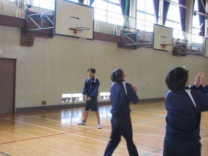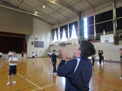 高くボールを上げて5回拍手の後、1回転してボールをキャッチします。