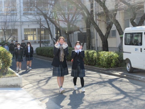 今年は本校48期生の卒業の年となります。正門の花壇には48を花で表したものを作成しています。