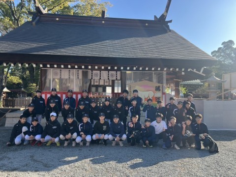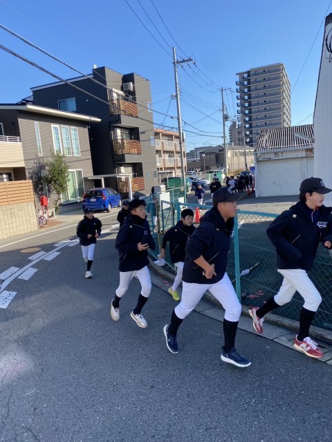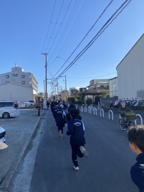 男子ソフトテニス部と野球部は新年の活動安全と目標達成を祈願するため、大鳥大社へ走っていき,初詣に行きました。