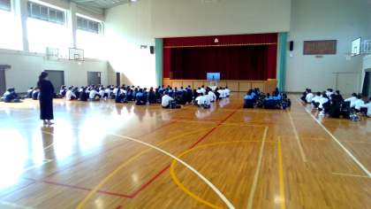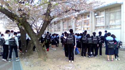 桜の花びらがヒラヒラと舞う中でのクラス発表・担任発表となりました。