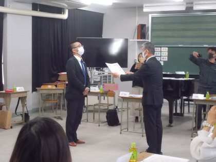 4月9日(土)PTA新旧役員会および感謝状の贈呈 公開日 2022/04/09 更新日 2022/04/09 学校紹介 本日PTAの新旧役員会を実施しました。学校行事 PTA関連の行事の確認の他、令和3年度のPTA役員・実行委員の皆様への感謝状の贈呈を行いました。