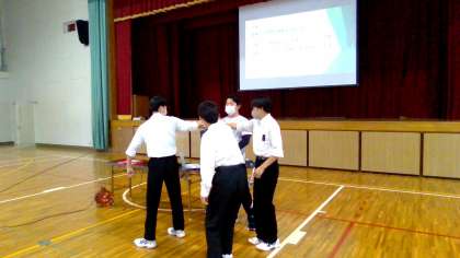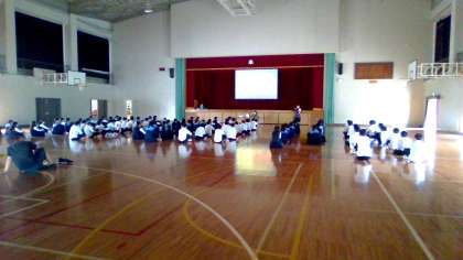 本日の5時間目には体育館で修学旅行に関する話をしました。