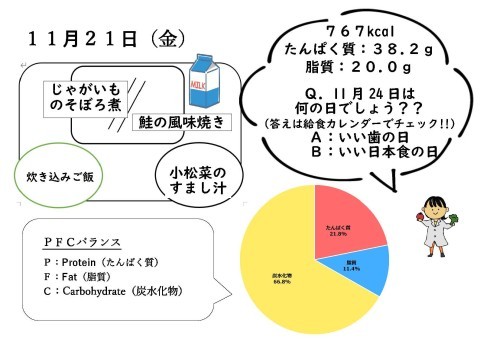 11月21日(金)今日の給食