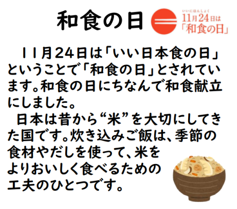 次の給食は11月28日(金)となります。