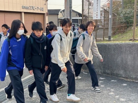 おはようございます。いい天気の朝です。生徒たちの登校の様子です。