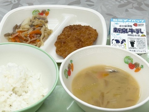 この日の献立は「ごはん・牛乳・さわらのみそ焼き・鶏すき・すまし汁」でした。