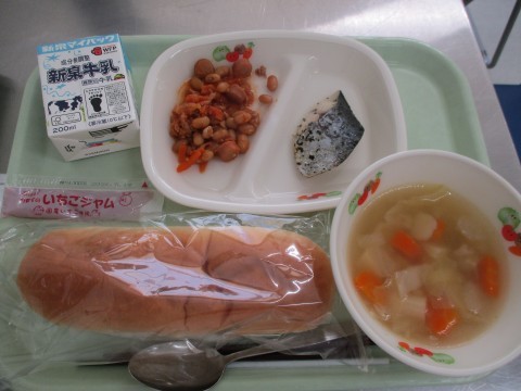 ●豚肉のバーべキューソース●じゃがいもの天ぷらチーズ風味●ミネストローネ●コッペパン●牛乳 の予定です。