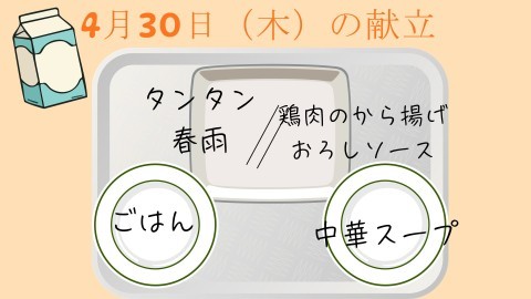 ※明日(4月15日水曜日)の献立は