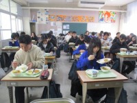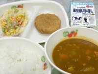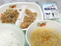 この日の献立は「ごはん・牛乳・鶏のから揚げ・千切りイリチー・四川風スープ」でした。