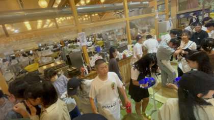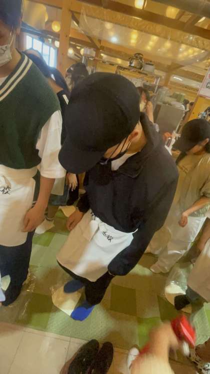 音楽に乗せてノリノリで生地を伸ばしてます!