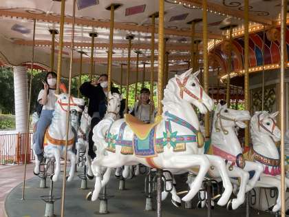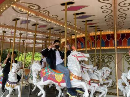 レオマワールドでメリーゴーランドに乗ってます!