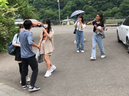 民家さんとの別れを惜しむ人、友だち同士で泊まった民家さんの自慢話を伝え合うなど、それぞれの形で民泊体験を振り返っていました。