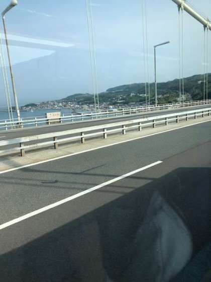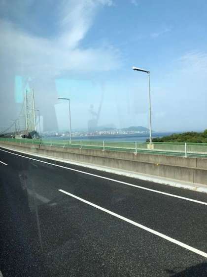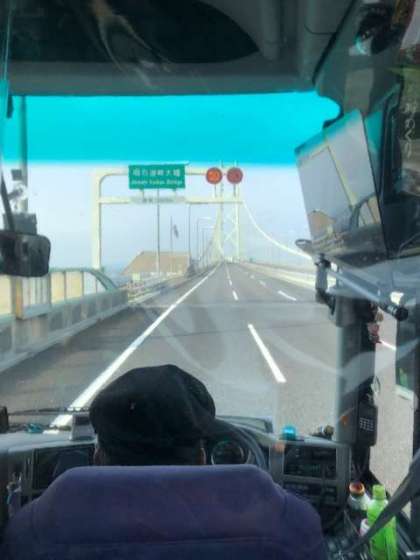 5組のバスは、淡路島に別れを告げ、明石海峡大橋を渡ります。
