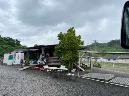 5〜7組、彦根スカイアドベンチャーに到着しました。 小雨が降っているため、バス内で昼食を食べながら待機してします。