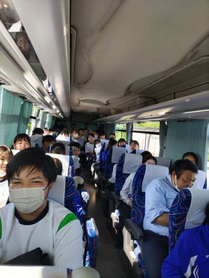 一組のバスではモノマネが盛り上がっています!