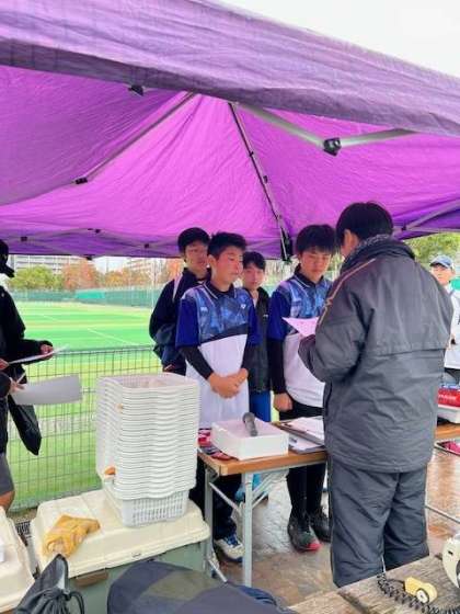 12月16日(土)金岡テニスコートにて泉北地区冬季連盟杯が行われました。雨の予報でしたが、午前中は天気が持ち全試合終えることができました。結果は2年生Aブロック横山・北口ペア準優勝、1年生Cブロック野田・細木ペア準優勝、Dブロック井上・平田ペア準優勝でした。天候の悪い中、ご観戦に来て頂きありがとうございました。来年もどうぞよろしくお願い致します。
