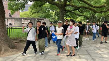 クラス写真を撮り、ガイドさんと一緒に公園内をまわります。