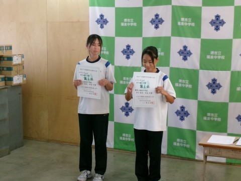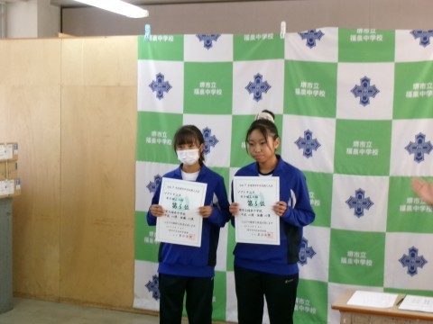 女子ソフトテニス部です。堺市新人大会「団体の部」と「個人の部」での表彰です。