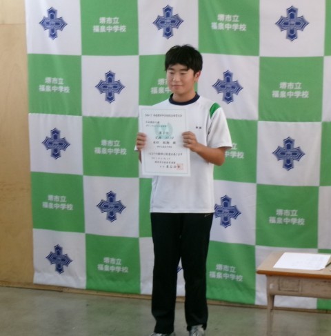 先日の生徒会選挙で選出された生徒会役員の紹介と認証を行いました。全生徒の代表としての活躍を期待しています。より一層すばらしい福泉中学校にしていきましょう!