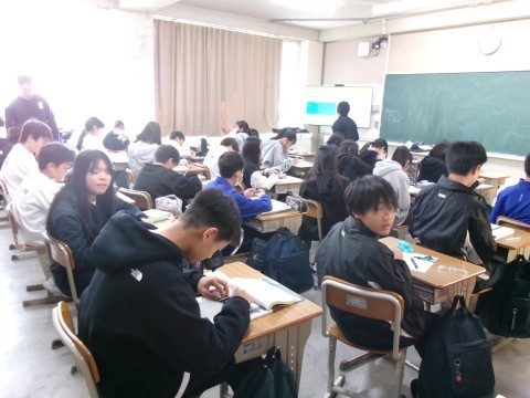 休み明けですが、1年生もしっかりと授業に取り組んでいます。中間テスト1週間前なので、テスト範囲の学習の内容について教え合ったり相談したりする時間もありました。写真は2組(数学)、3組(社会)です。