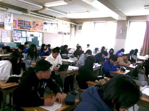 第2回実力テストにのぞむ3年生です。自分の100%の力を発揮できるように期待しています。写真は1組、3組、4組です。