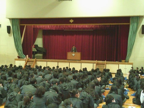 体育の授業の駅伝のスタートに立ち会いました。1周目のタイムに同じチームの生徒から「もっと速く走れ。」と檄が飛んでいました。数学の時間では,円周率πを使っての,面積や体積の計算を学習していました。社会の授業では,鎌倉時代と室町時代の政治の仕組みの違いについて学習していました。