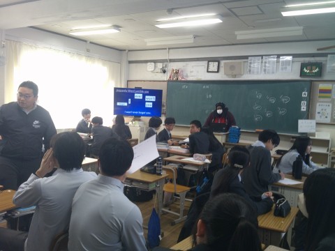 数学は,手作りのサイコロで,確率の学習でした。理科は,温暖前線や寒冷前線の仕組みについてプリントで学習。英語は,二人の先生が生徒に説明していました。