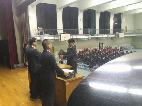 昨日行われた,薬物乱用防止教室の様子です。学校薬剤師の和田 憲周先生から薬の上手な服用の仕方や,たばこやアルコールの害,違法薬物の乱用防止などのお話を伺いました。