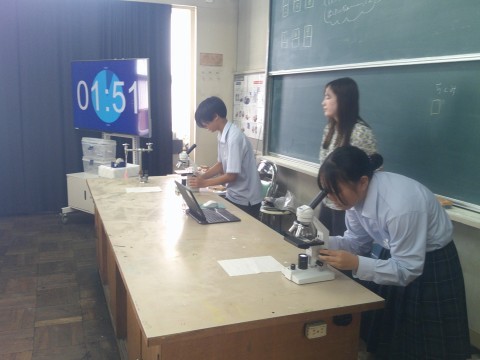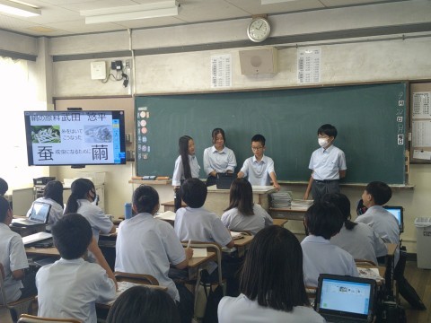 体育の授業では,体育大会の学年演技の練習に励んでいました。理科は,顕微鏡の使い方の実技テストを行っていました。しっかりピントが合うまでがテストでした。家庭科は,グループで調べていた,繊維をパワーポイントで発表していました。たんぽぽ学級の1年生も楽しく学習していました。
