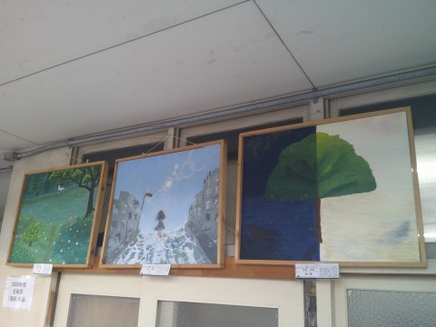 美術室付近に「部展」に出展した作品が,掲示されています。力作揃いです。「部展」では,奨励賞を受賞しました。