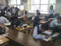 裁縫の実習で,いろいろな縫い方を学習します。今日は,波縫いです。線に合わせて黙々と縫っていました。