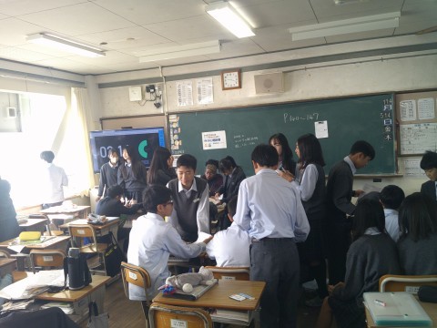体育のアルティメットは,7人制で試合ができるほどに上達していました。空間を広げ,ディフェンスされないように動いていました。英語の授業では,スピーチの練習でした。ジャッキー先生にも聞いてもらいます。数学は,問題演習でした。相談しながら問題に挑んでいました。